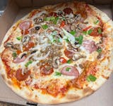 Sausage, pepperoni, hamburger, Canadian bacon. /* no substitutions allowed